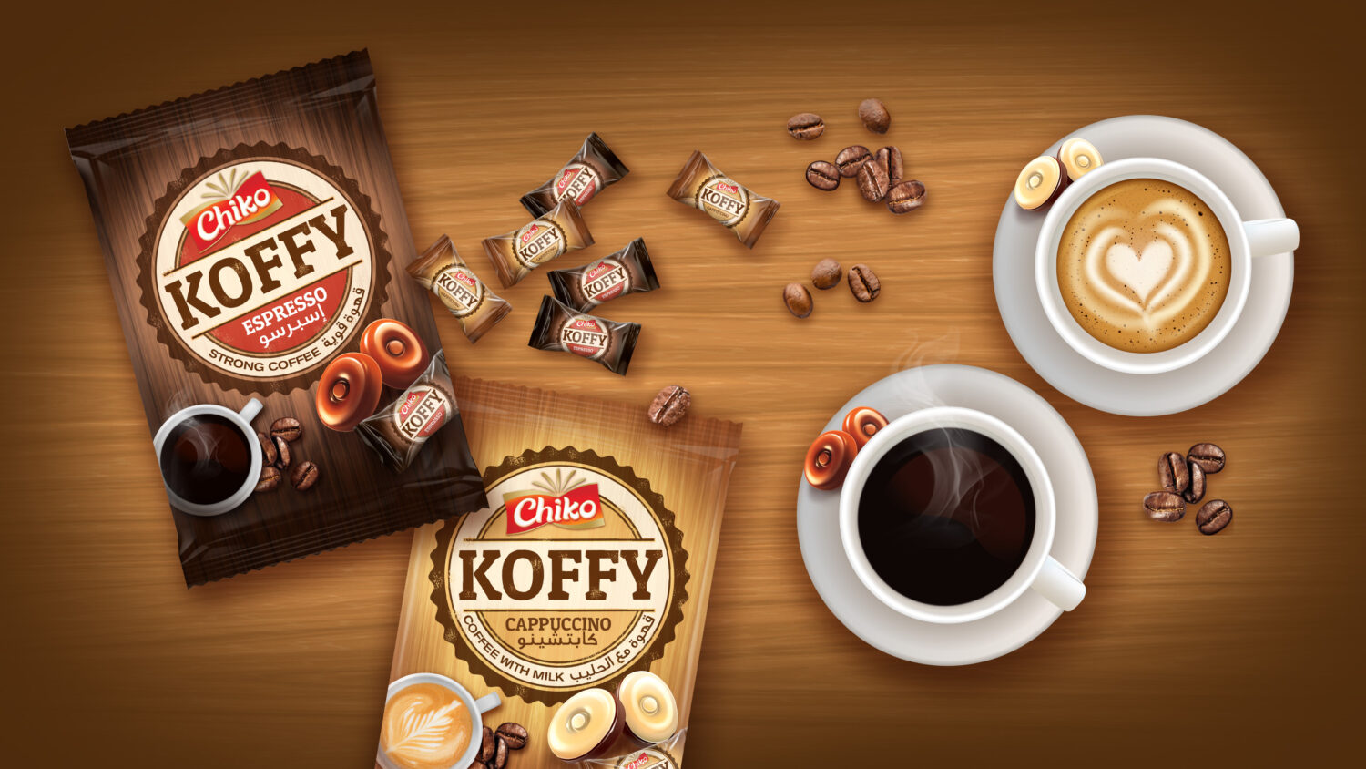 A completely new product sold in the Middle East. A coffee flavored premium candy. The feeling of real coffee cues was integrated into an ownable brand stye and an indulgent, appetizing range was created. The first batch to market sold out immediately.