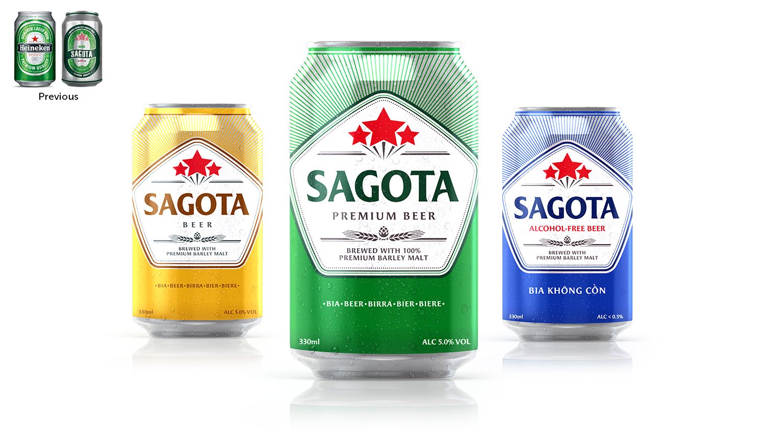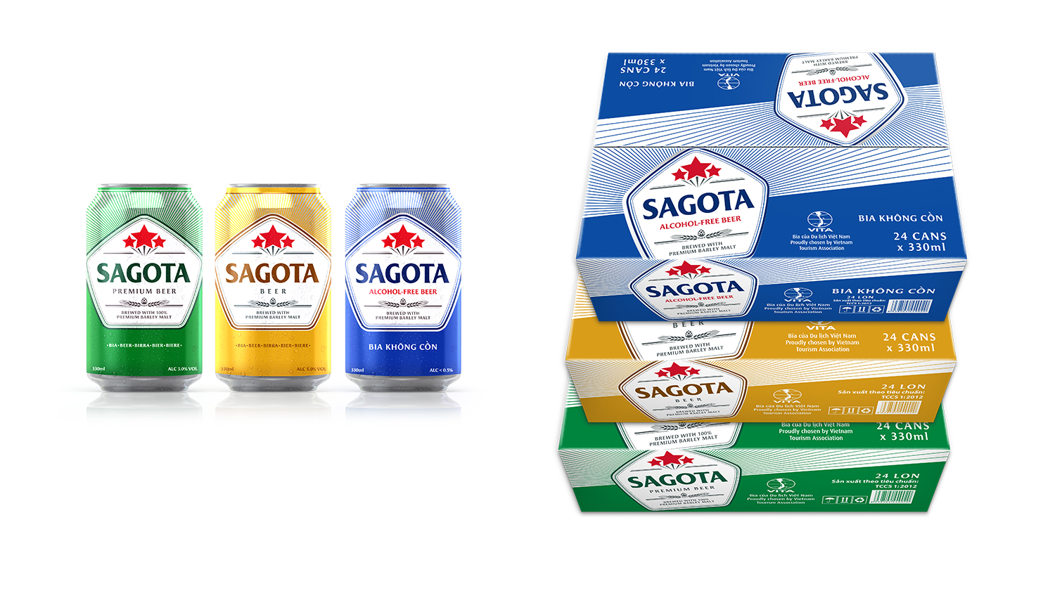 The original design for Sagota Beer looked like a cheap copy of Heineken. As such, consumers would not believe it was a quality beer. A new branding idea was created to be unique and celebrate ‘The Spirit of Saigon’. Uplifting, modern and tapped into local feelings with a lucky 5 sided brand device.